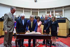 Na sequência, em um ato no gabinete da presidência da Alesc, foi realizada a transmissão de cargo pelo agora ex-governador Carlos Moisés para o novo chefe do Executivo, que cumpre mandato eletivo para o período de 2023 a 2026.