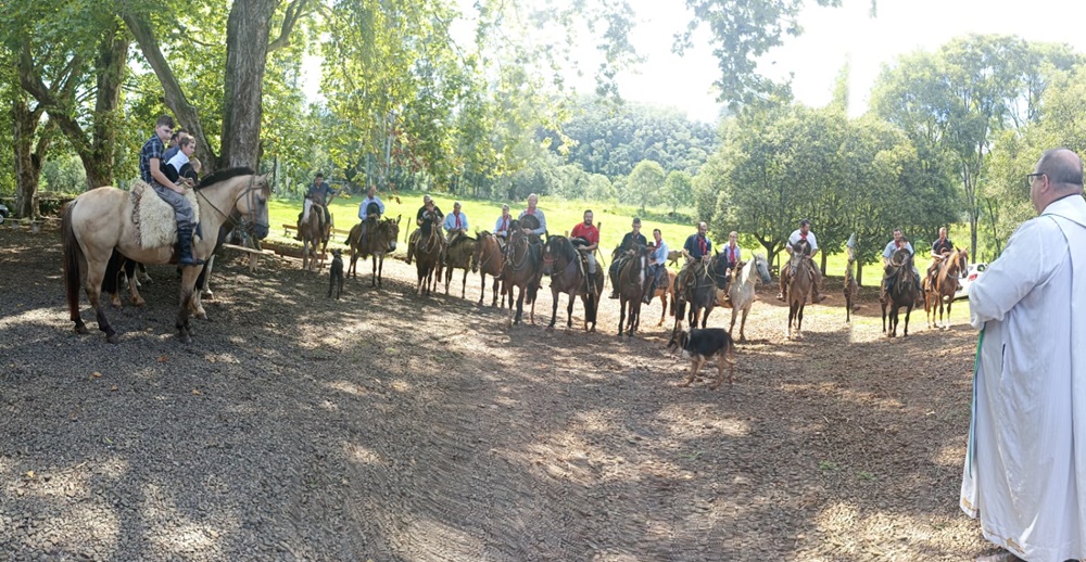 A programação iniciou às 10:00 hs com a Santa Missa e uma benção aos 18 cavalarianos que prestigiaram o evento, em seguida foi servido o almoço..