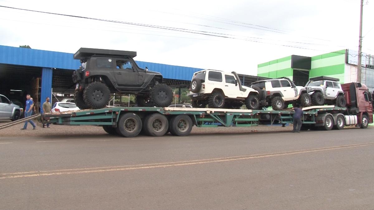 Ao todo, 10 veículos vão participar da expedição, cinco de Erechim, que foram carregados em um caminhão nesta terça, três de São Paulo e dois de Cuiabá.