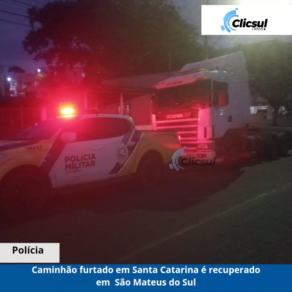 Concórdia – Na tarde desta sexta-feira, dia 03, a equipe da Patrulha Rural recebeu informações via central que um caminhão Modelo Scania branco, teria sido furtado em Santa Catarina no município de Concórdia e poderia estar rodando pela BR-476 sentido município da Lapa.
