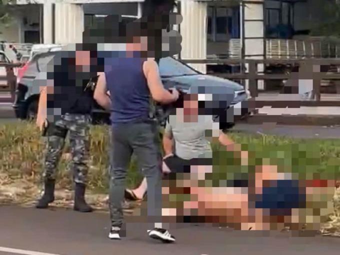 O boletim registra o depoimento de policiais que disseram que ao chegar na ocorrência conversaram com outros policiais que já estavam no local e que informaram que com a chegada das guarnições os envolvidos na briga atravessaram a BR e entraram em um restaurante. Neste restaurante os policiais disseram que enfrentaram resistência, por parte de um dos indivíduos, sendo necessário uso de força moderada para algemá-lo.