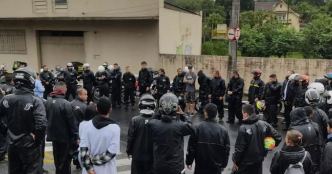 Cerca de 250 motoboys, além de alguns motoristas com carros, se concentraram no centro da cidade e seguiram para a escola.