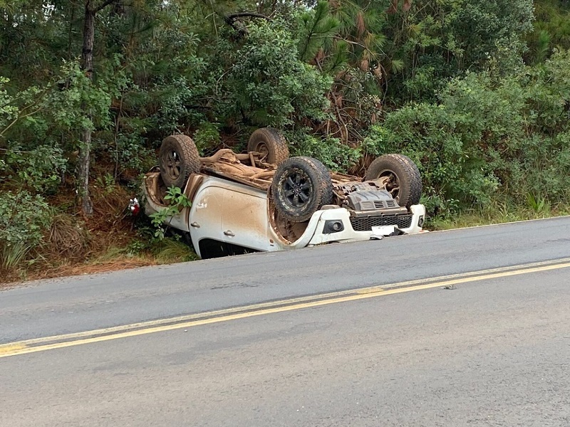 Colisão entre caminhonete e caminhão fez um dos veículos capotar