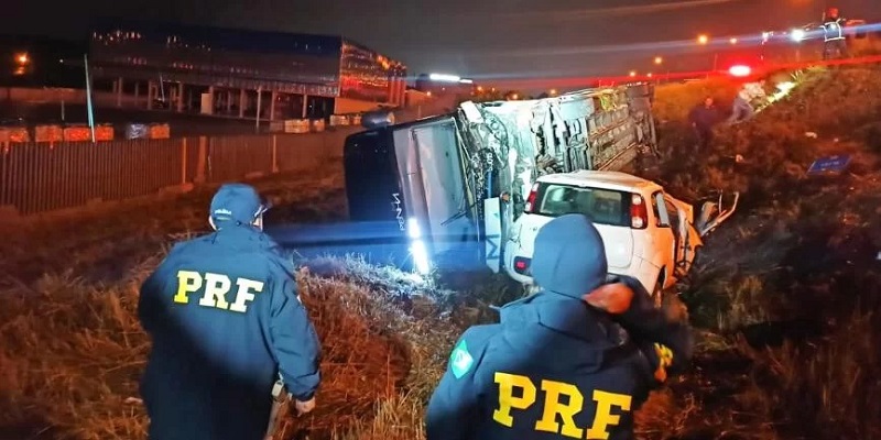 Um acidente de trânsito com um ônibus de linha interestadual que saiu da cidade de Nova Prata e seguia para São Paulo, deixou dois mortos e ao menos 19 feridos na noite desse domingo no km 8 da BR 116, em Quatro Barras, na Região Metropolitana de Curitiba, no Paraná. Conforme a Polícia Rodoviária Federal, três vítimas estão em estado grave. A maioria dos passageiros eram do Rio Grande do Sul. O coletivo havia feito uma parada na Estação Rodoviária de Curitiba, antes de seguir viagem para a capital paulista.