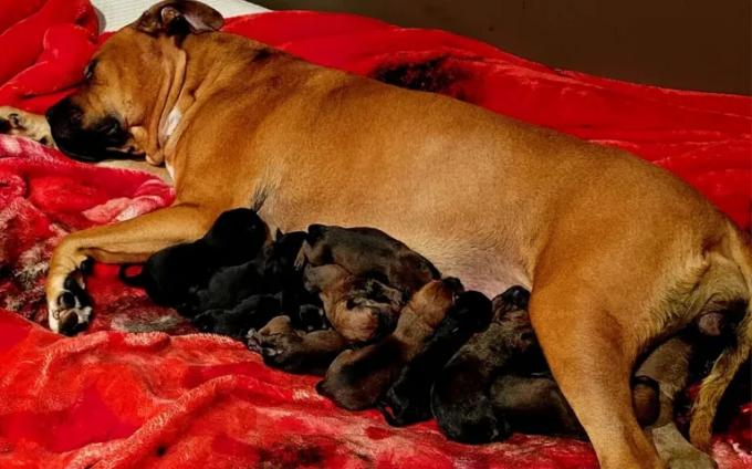 Honey bateu o recorde nacional da Austrália e ficou atrás do recorde mundial por apenas dois filhotes. O recorde mundial pertence a uma mastim napolitano muito maior e foi conquistado por meio de uma cesariana em 2004.