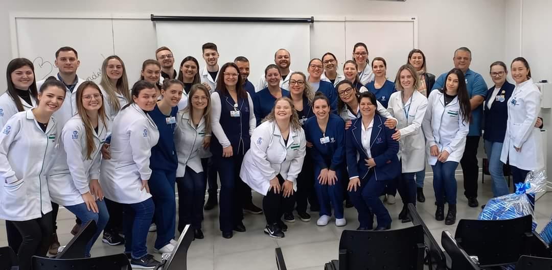 Para marcar a conclusão desta etapa de formação, foi realizado um evento de integração entre ensino e serviço. O encontro tem sido realizado anualmente com o objetivo de socializar as atividades desenvolvidas e agradecer pela contribuição e acolhimento do serviço e equipe para com os discentes e docentes. O ato contou com a presença do Diretor Acadêmico, Adilson Luís Stankiewicz, a Coordenadora do Curso, Ângela Maria Bresolin, o Diretor do Hospital, Márcio Antunes Pires, e a Enfermeira Neiva Fátima Pesavento, representando as enfermeiras assistenciais, coordenadoras de área e a gerência dos serviços de enfermagem.