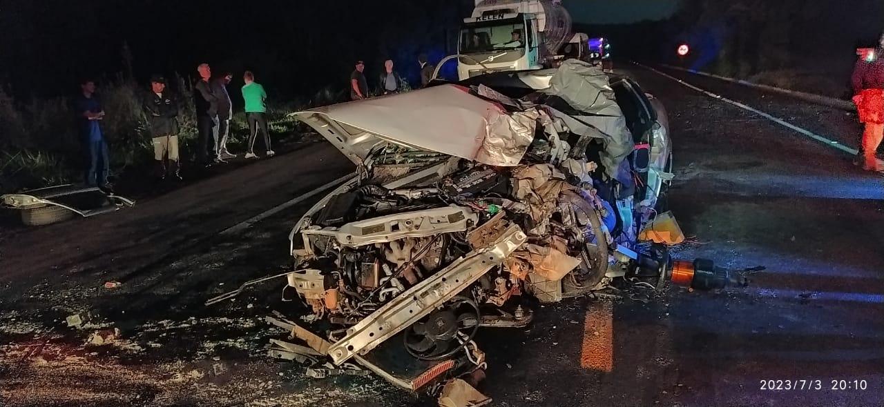 Um homem morreu e outras duas pessoas ficaram feridas em uma violenta colisão frontal entre dois veículos na BR-282, em Xaxim, no Oeste catarinense. O aciodente aconteceu na noite desta segunda-feira, dia 3. Os dois carros tinham placas de Xaxim.