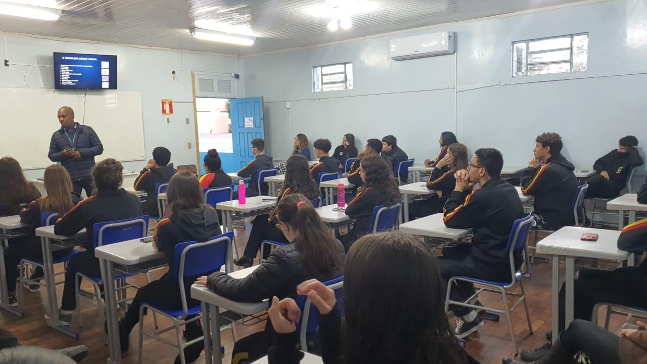 A palestra foi realizada para os alunos da Escola Estadual de Campinas do Sul
