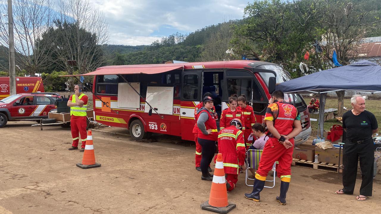 A estrutura dos bombeiros voluntários no Vale do Taquari inclui equipes fazendo a limpeza de prédios públicos e salões onde estão sendo colocados donativos vindos de todo o Estado. É nessa cidade que a Voluntersul colocou o posto de comendo dos voluntários (em um micro-ônibus da unidade voluntária de Riozinho).