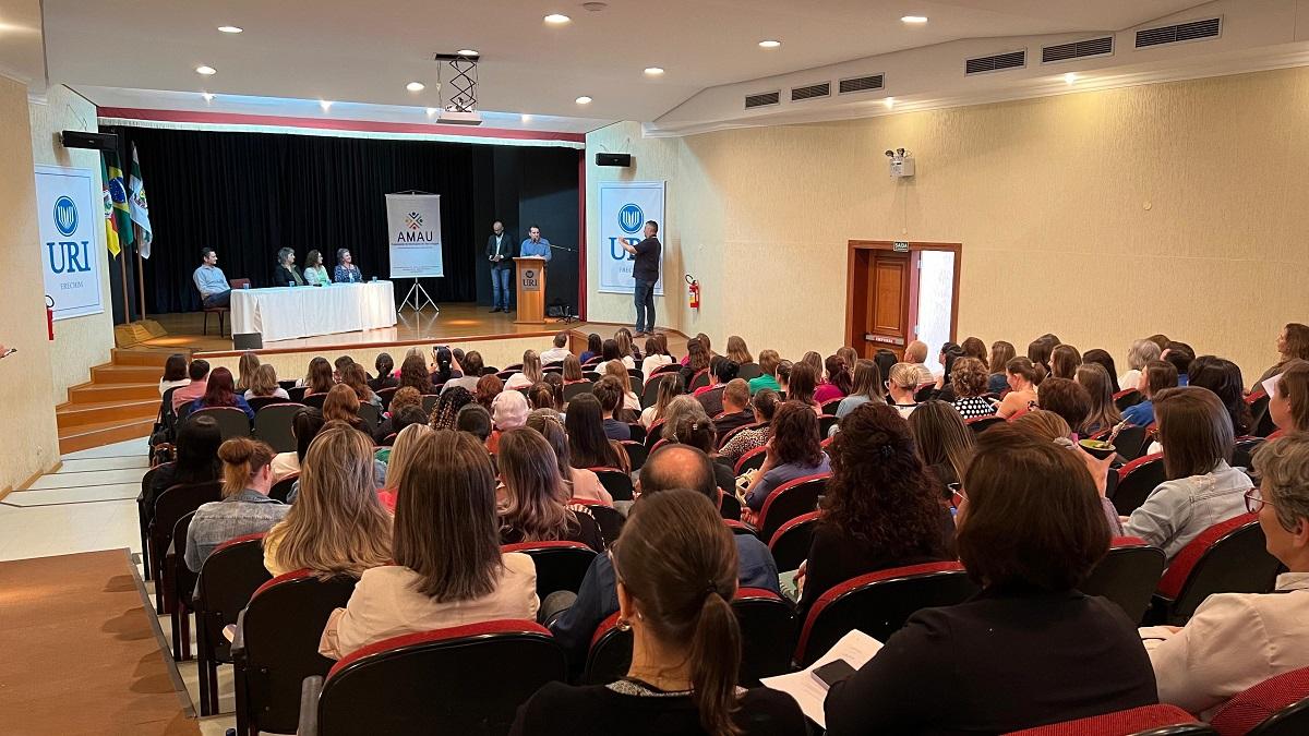 Representantes de órgãos públicos, sociedade civil, instituições, professores, estudantes, secretárias municipais, Fóruns Municipais de Educação, de 29 municípios da região estão participando da 1a Conferência Intermunicipal de Educação, nesta terça-feira (24), no prédio 8 da URI, em Erechim. A programação é promovida pelo Conselho dos Secretários Municipais de Educação da Associação dos Municípios do Alto Uruguai (CONSEME-AMAU), com apoio da Prefeitura de Erechim, por meio da Secretaria Municipal de Educação.