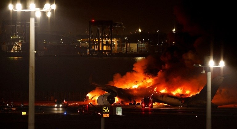 Voo 516, procedente de Sapporo, pousava no aeroporto de Haneda quando bateu em aeronave da Guarda Costeira japonesa