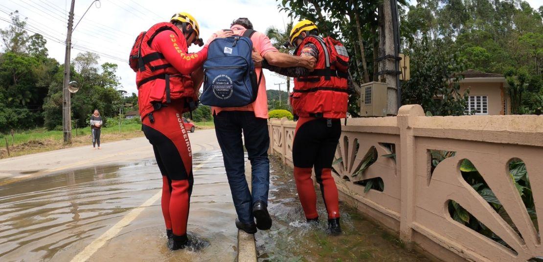 Em Paulo Lopes, um dos municípios mais atingidos do estado, as equipes do CBMSC atuaram no resgate de famílias que estavam ilhadas. Além disso, prestaram apoio para a entrega de alimentos para moradores em locais de difícil acesso no Bairro Sertão do Campo, em São José. Outra ação da corporação foi a entrega de mantimentos a caminhoneiros e demais cidadãos que estavam presos na interdição no Morro dos Cavalos, na BR-101 Sul. Foram entregues água, alimentos, e outros mantimentos – em parceria com a Defesa Civil estadual e a Polícia Rodoviária Federal (PRF).