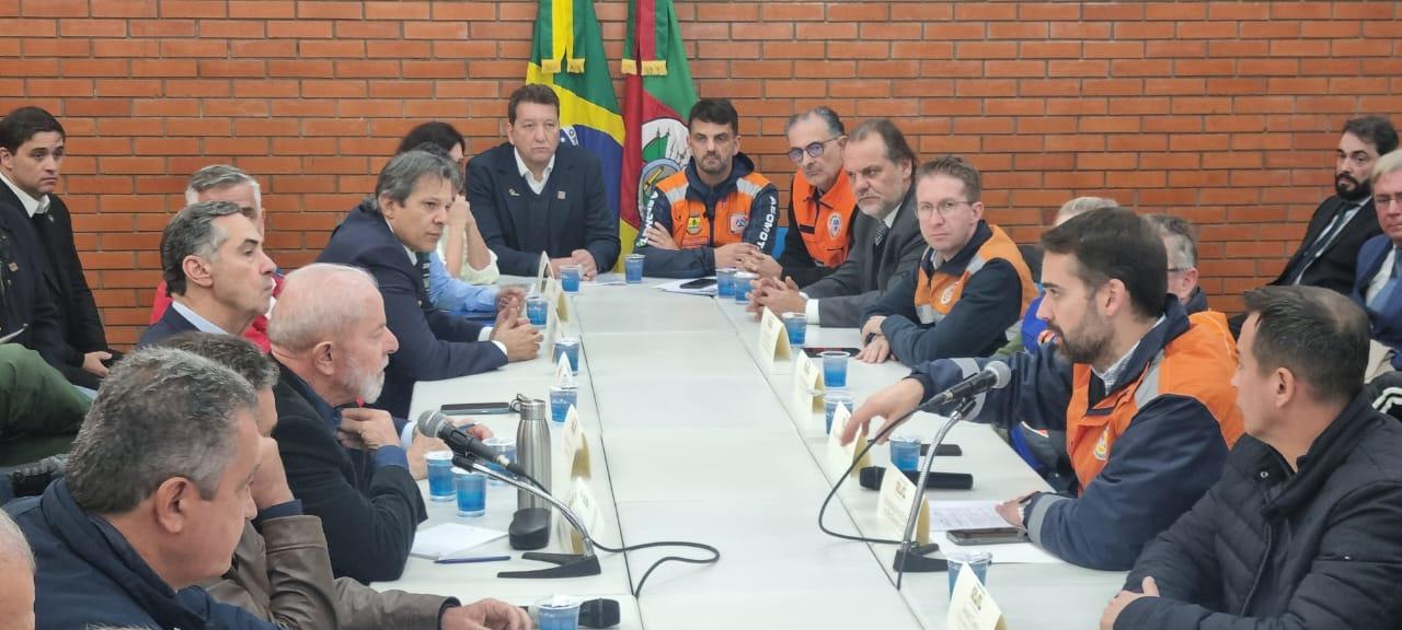 Representantes do Sistema Fecomércio-RS/Sesc/Senac, da Fiergs, Federasul, Sebrae-RS e OAB/RS estiveram reunidos, nesta quarta-feira (15/05), com o Presidente da República, Luiz Inácio Lula da Silva, em São Leopoldo. Na ocasião, as entidades entregaram um ofício pedindo apoio do Governo Federal para a implantação de medidas do programa de Recuperação Econômica e Social do Rio Grande do Sul, chamado de Resgate/RS.