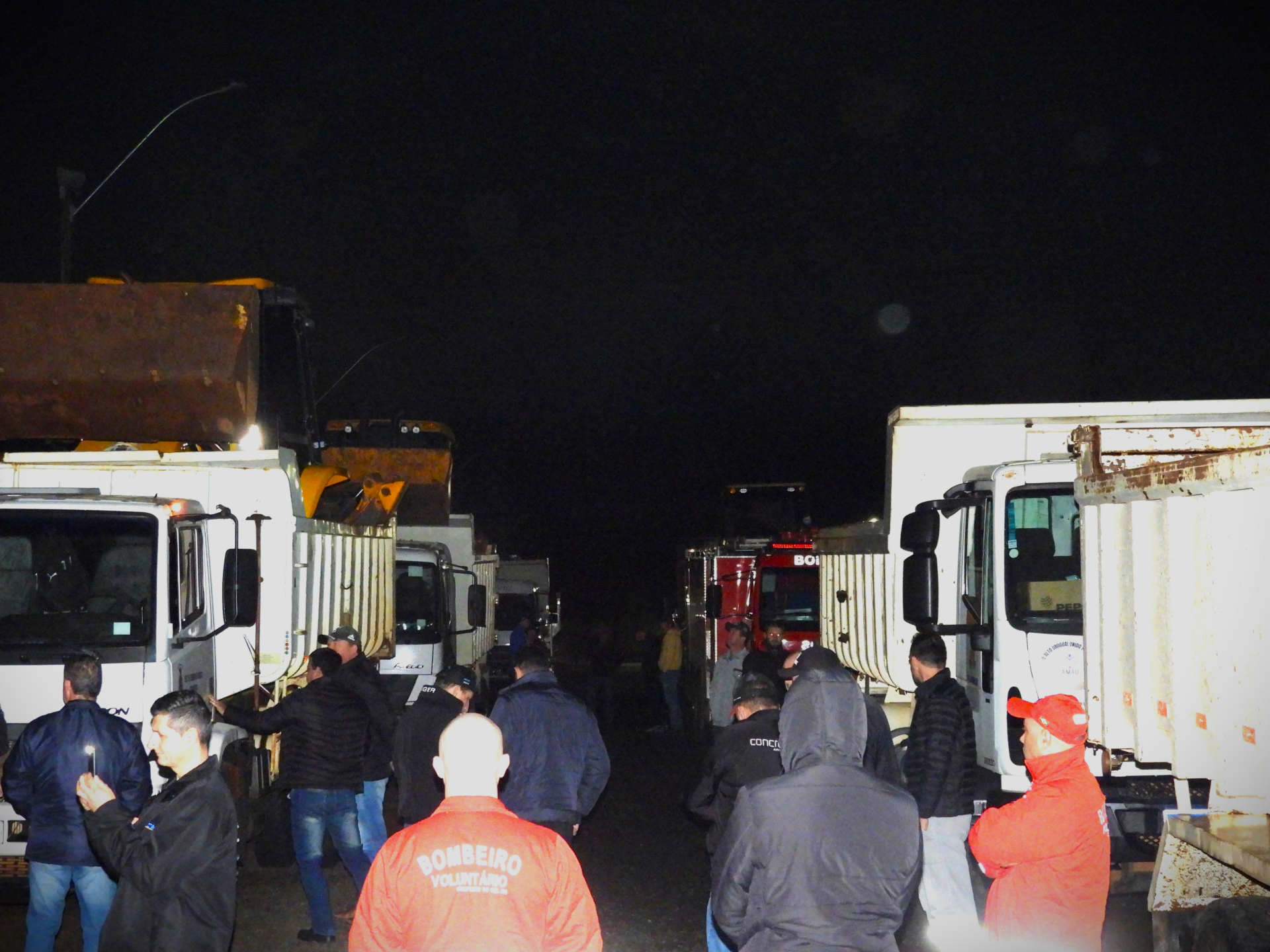 E na madrugada desta segunda-feira, 20, em frente ao Parque da Accie em Erechim, as máquinas forma chegando de todos os municípios. Alguns prefeitos acompanharam seus servidores neste momento de ajuda humanitária, protagonizada pela AMAU: Josiel Griseli, presidente da AMAU e prefeito de Ponte Preta; Marcelo Arruda, prefeito de Barra do Rio Azul; Valdemar Cibulski, prefeito de Itatiba do Sul; e Paulo Battisti, prefeito de Campinas do Sul.