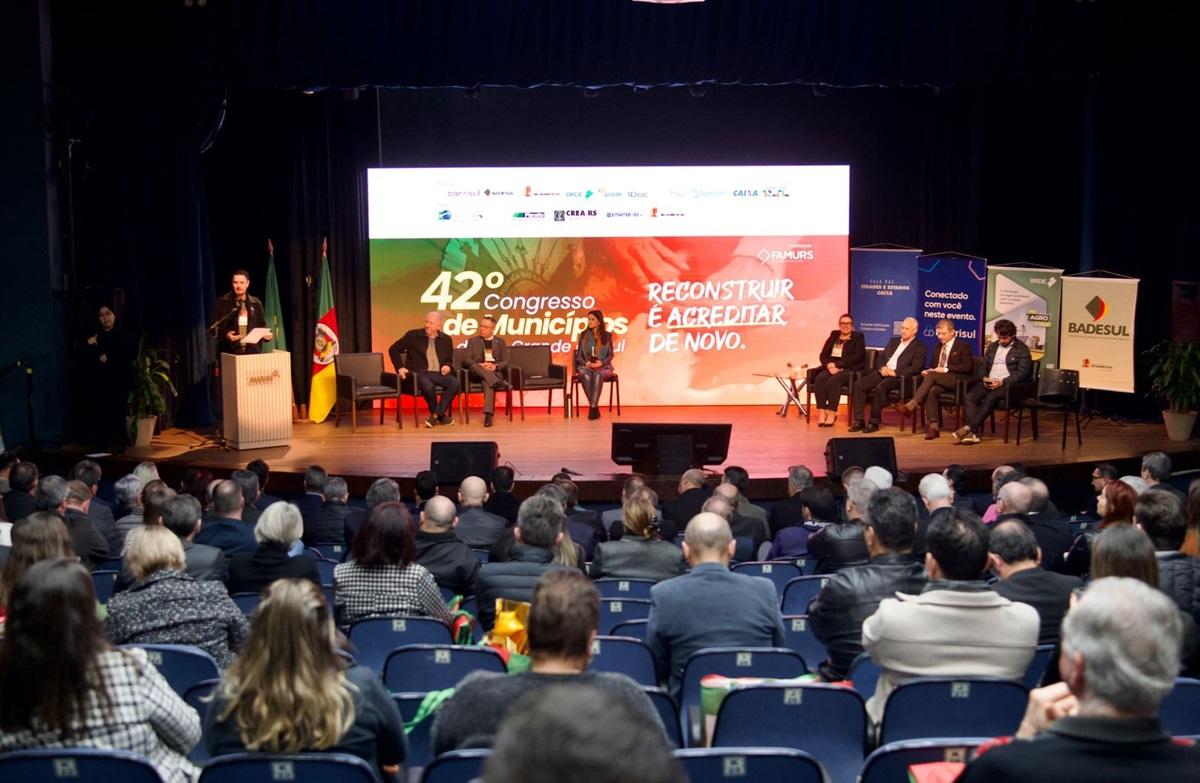 Reconstruir é acreditar de novo” é o tema norteador das discussões do 42º Congresso de Municípios do Rio Grande do Sul. O encontro anual de gestores municipais promovido pela Famurs, cujo objetivo é debater o fortalecimento e a reconstrução dos municípios gaúchos após o RS viver a maior tragédia climática de sua história, teve início na manhã desta terça-feira (16/07), na Associação Médica do Rio Grande do Sul (AMRIGS), reunindo prefeitos, vice-prefeitos, secretários e autoridades.