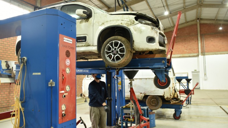 - Dentro dos depósitos, veículos destinados à reciclagem são preparados com a descaracterização do chassi e das placas do veículo;