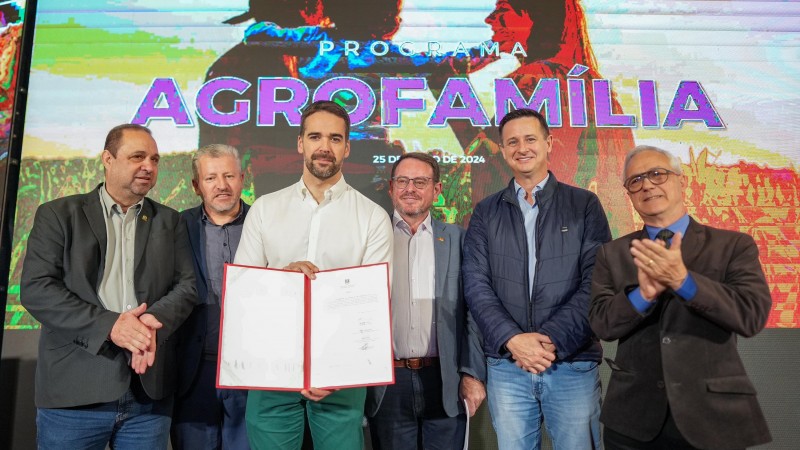 O governo do Estado lançou, nesta quinta-feira (25/7), o Programa Agrofamília, uma iniciativa que busca o fortalecimento da agricultura familiar e o fomento à agroindustrialização dos produtores. O investimento é de R$ 201,2 milhões. O evento ocorreu no Palácio Piratini e contou com a apresentação do governador Eduardo Leite e dos secretários de Desenvolvimento Rural, Ronaldo Santini, de Desenvolvimento Social, Beto Fantinel, e da Agricultura, Pecuária, Produção Sustentável e Irrigação, Clair Kuhn.
