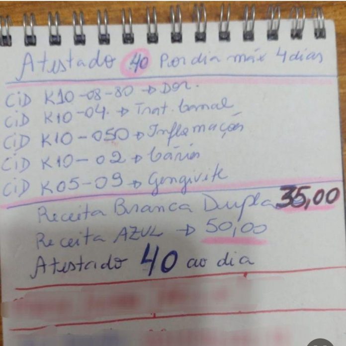 Após três meses de investigações, a DRACO apurou que a mulher, junto com seu companheiro dentista, vendia atestados e receitas sem consultas, apenas mediante pagamento. Os nomes dos compradores já estão com a polícia.