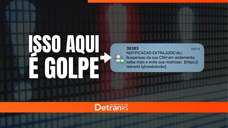 O DetranRS alerta sobre mais um golpe, desta vez via mensagens de SMS. Na notificação, o condutor é induzido a entrar em um link para evitar a restrição, o que o leva a fornecer seus dados e realizar pagamentos fraudulentos.