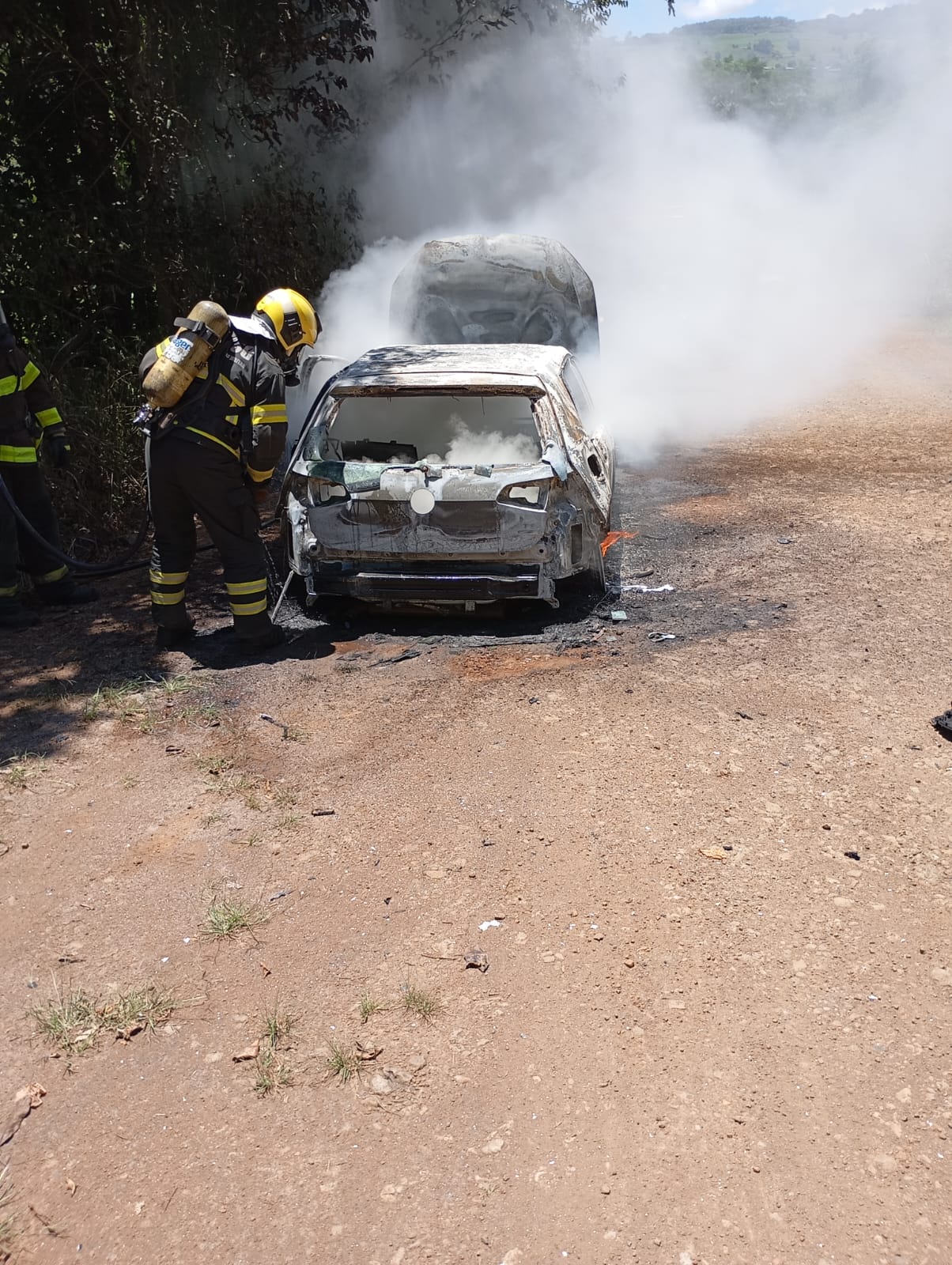 Incêndio destruiu um veículo nesta quinta-feira (5), por volta das 12h, na localidade de Nova Teutônia, interior de Seara.