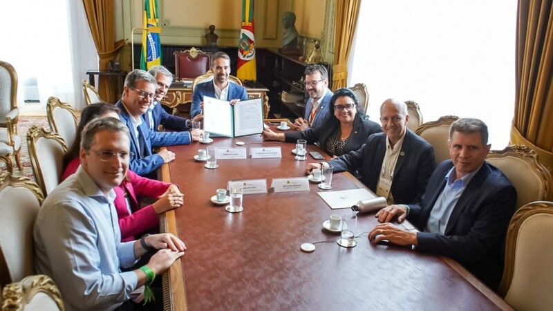 Acompanharam a entrega o secretário de Desenvolvimento Econômico, Ernani Polo, o presidente da Fundação Estadual de Proteção Ambiental (Fepam), Renato Chagas, e o presidente da Invest RS, Rafael Prikladnicki.