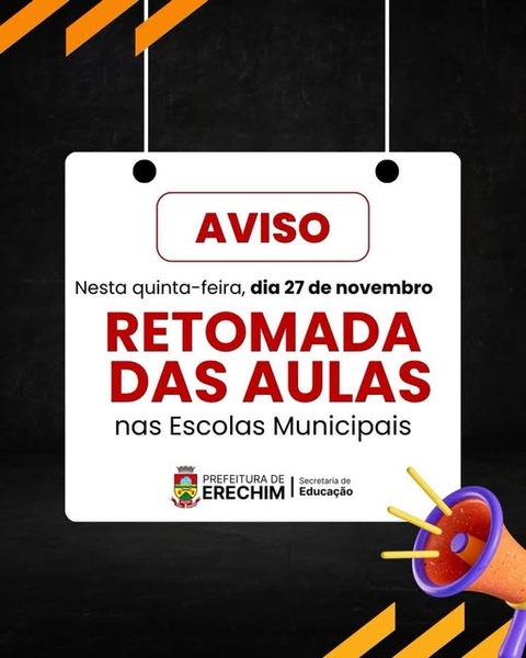 As aulas nas Escolas Municipais e nas Escolas Privadas conveniadas com o município serão retomadas na quinta-feira (27). A medida foi tomada após avaliação das condições de segurança nas unidades de ensino, que já estão preparadas para receber os estudantes.