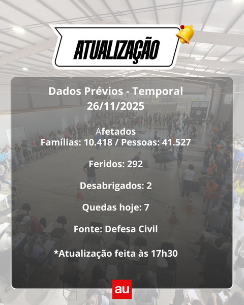 De acordo com os dados mais recentes, o impacto da tempestade afetou cerca de 10.418 famílias e aproximadamente 41.527 pessoas. Infelizmente, 292 pessoas precisaram de atendimento médico, com 2 delas sendo registradas como desabrigadas até o final da quarta-feira (26). A Prefeitura segue trabalhando para minimizar os danos e ajudar as famílias afetadas a se recuperar o mais rápido possível.