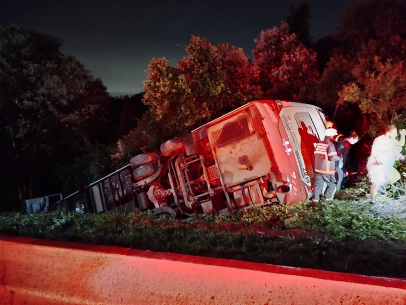 Ônibus de Erechim com 39 pessoas tomba e deixa 15 feridos na BR-282 e...