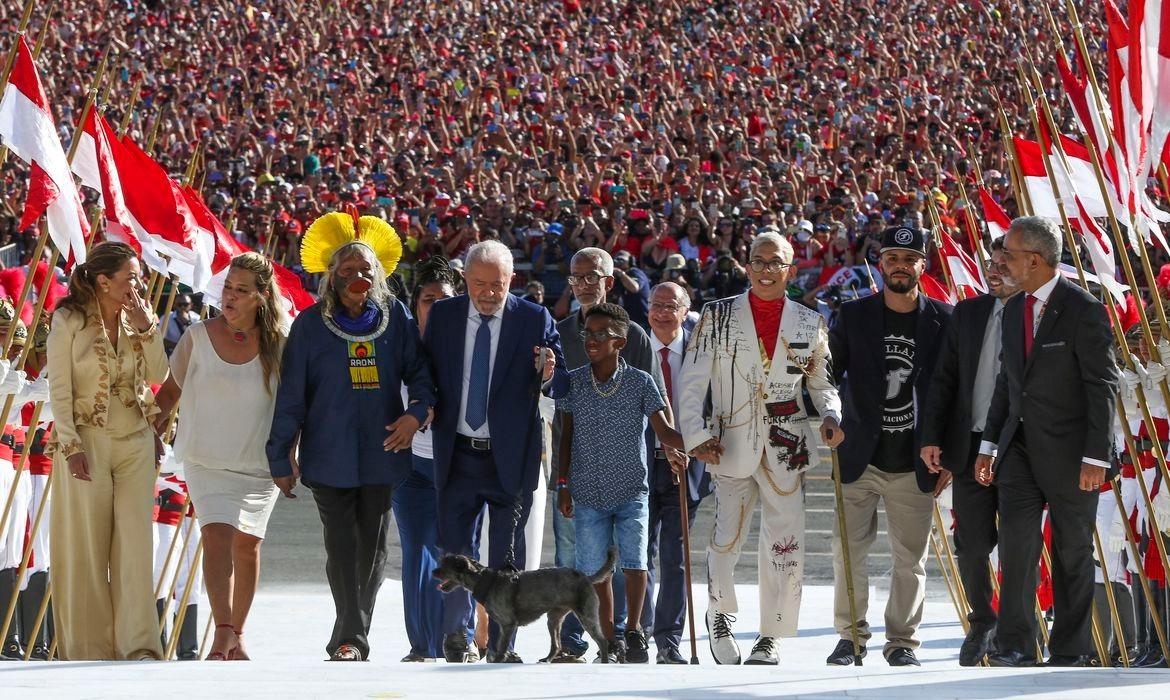 Após ser empossado no Congresso Nacional, o presidente Luiz Inácio Lula da Silva subiu hoje (1º) a rampa do Palácio do Planalto, em Brasília, e recebeu a faixa presidencial de cidadãos que representam a diversidade do povo brasileiro. Entre eles estava o cacique Raoni Metuktire, de 90 anos, líder do povo Kayapó, o menino Francisco Carlos do Nascimento e Silva, o professor Murilo de Quadros Jesus, a vigília Jucimara Fausto dos Santos, o influenciador da inclusão Ivan Vitor Dantas Pereira, o metalúrgico Weslley Viesba Rodrigues Rocha e a catadora Aline Sousa.