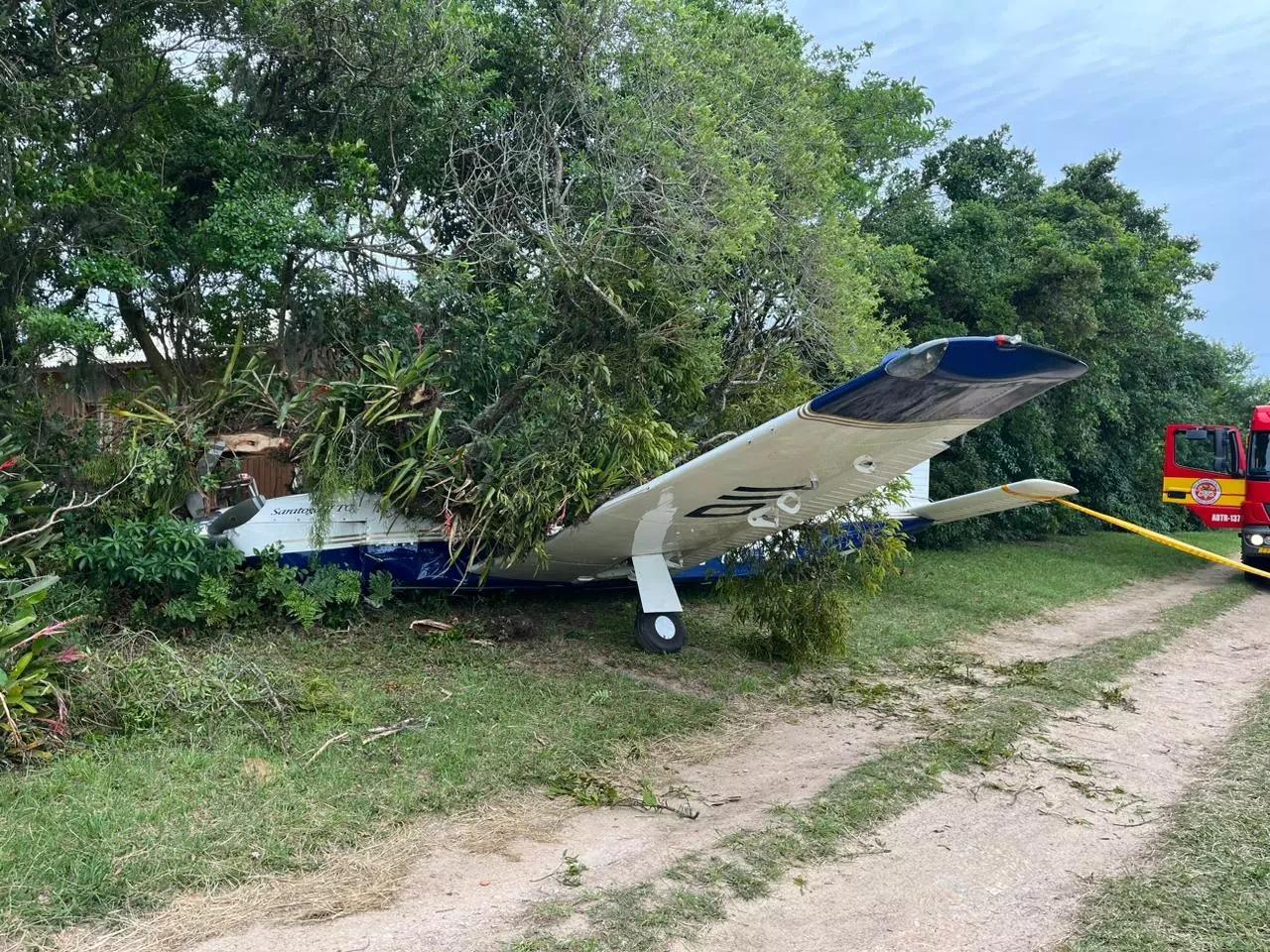 Segundo o Corpo de Bombeiros, a aeronave ao efetuar o pouso, não conseguiu parar e colidiu contra árvores. Acidente aconteceu em Imbituba.