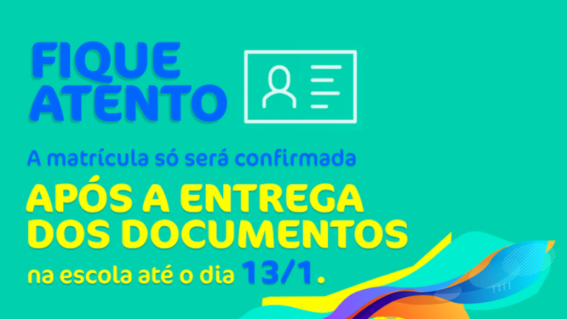O período de confirmação das matrículas da Rede Estadual para o ano letivo de 2023 segue até 13 de janeiro diretamente na escola para onde o candidato foi designado. Para isso, é necessário que pais ou responsáveis apresentem a documentação necessária para a efetivação da vaga.