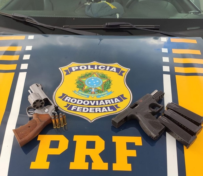 Policiais rodoviários federais apreenderam na manhã desta segunda (16), na BR-282 em Chapecó, uma pistola e um revólver prontos para uso, além de 58 munições.