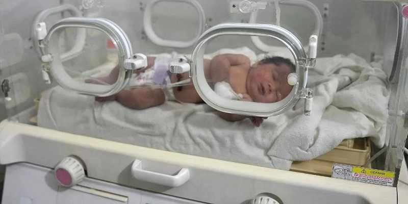 A bebê foi levada para um hospital na cidade vizinha de Afrin, onde foi colocada em uma incubadora e recebeu vitaminas.