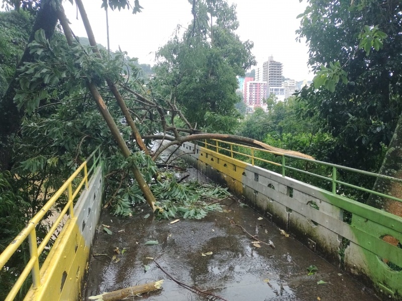 Bombeiros foram acionados para efetuar o corte de árvore que caiu sobre a via no Acesso Adolfo Ziguelli e na Avenida Santa Terezinha em Joaçaba. Em Herval d´Oeste, o vento derrubou uma árvore na cabeceira da passarela Atílio Pagnoncelli.