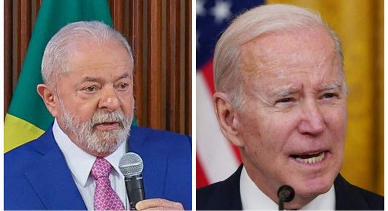 Os presidentes do Brasil, Luiz Inácio Lula da Silva, e dos EUA, Joe Biden