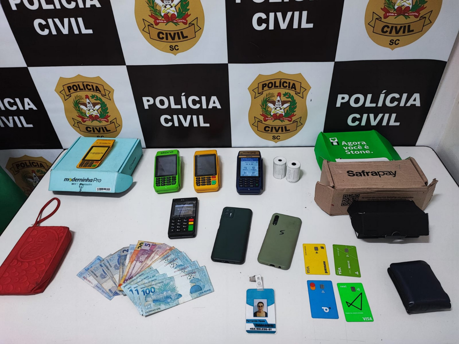 Com os suspeitos foram apreendidos diversos objetos, como máquinas de cartões de crédito, dinheiro, cartões bancários que foram recolhidos das vítimas e utilizados para compras e saques, além de um veículo, entre outros objetos que serão analisados no prosseguimento das investigações.