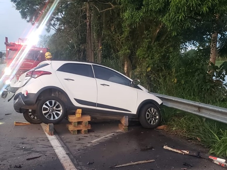O Corpo de Bombeiros informou que o motorista do automóvel ficou preso nas ferragens e morreu ainda no local. O homem que dirigia o caminhão, de 33 anos, sofreu ferimentos leves. O veículo estava carregado de cimento e parte da carga ficou espalhada no asfalto.
