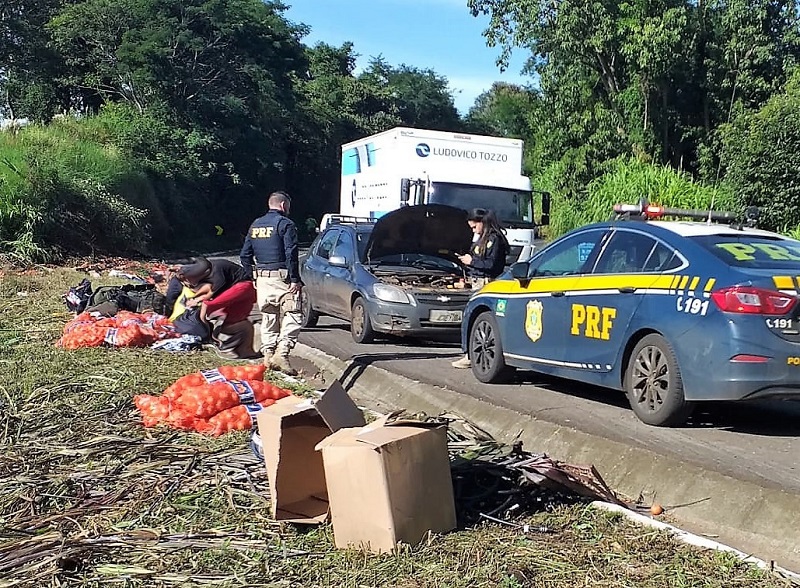 O homem foi flagrado enquanto furtava sacos de cebolas de um caminhão tombado na BR-282.