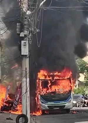 Testemunhas disseram que o homem, de 39 anos, entrou no ônibus, que estava lotado, perto da rodovia Washington Luiz. Ele carregava uma sacola preta com um galão de gasolina e uma faca.