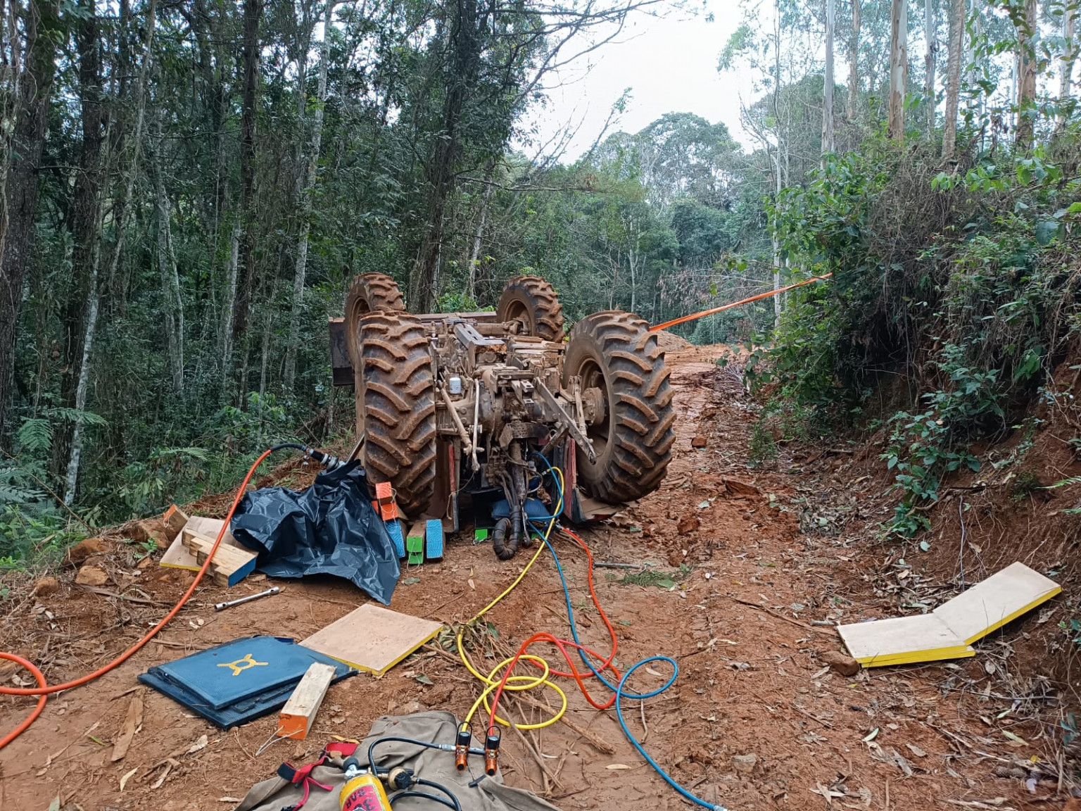 A tragédia foi registrada na tarde deste sábado (20), por volta das 15h. Conforme informações do Corpo de Bombeiros Voluntários, por motivos desconhecidos, a máquina tombou, vitimando uma menina, deixando um adulto preso embaixo do equipamento e mais um ferido.