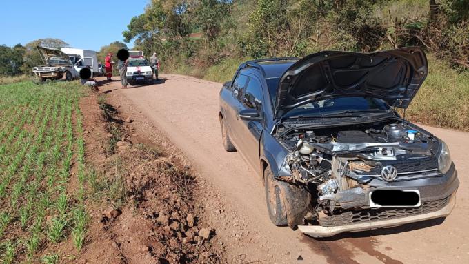 A colisão envolveu duas caminhonetes, uma modelo Fiat/Fiorino, com placas de Cacique Doble e outra modelo VW/Saveiro Cross, emplacada em São José do Ouro.