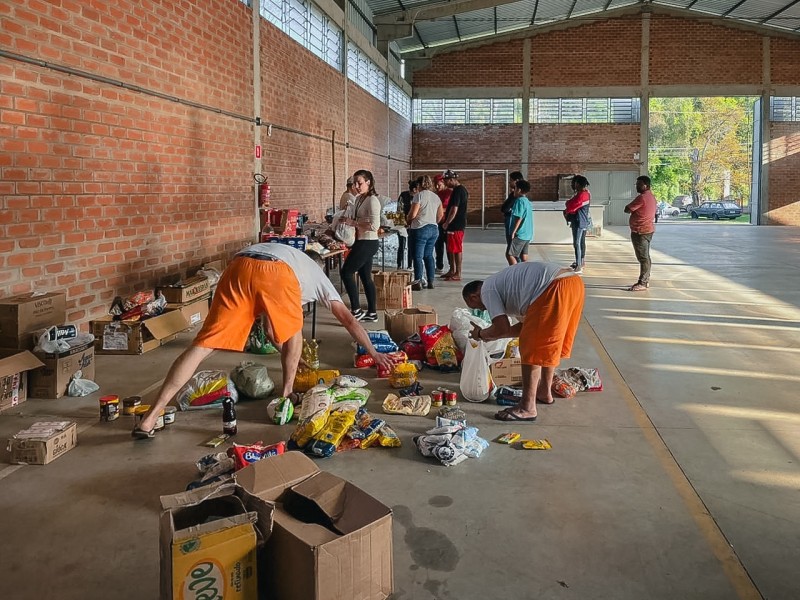 Apenados ajudaram na distribuição de alimentos em Encantado - Foto: Divulgação Susepe/SSPS