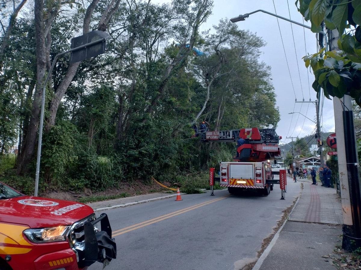 De acordo com o Corpo de Bombeiros, o homem de 32 anos foi resgatado com o auxílio de uma autoescada mecânica e não sofreu ferimentos graves. A árvore tinha cerca de 20 metros de altura.