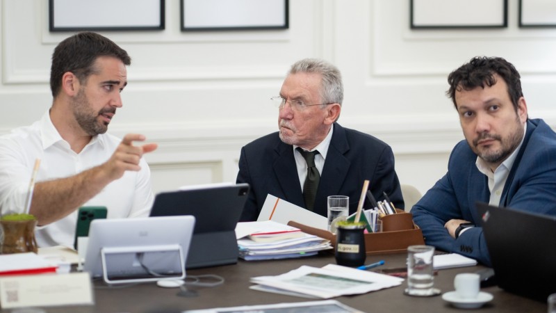Acompanhado do chefe da Casa Civil, Artur Lemos, Leite se reuniu com o presidente do IPE Saúde, Paulo Afonso Oppermann - Foto: Maurício Tonetto/Secom