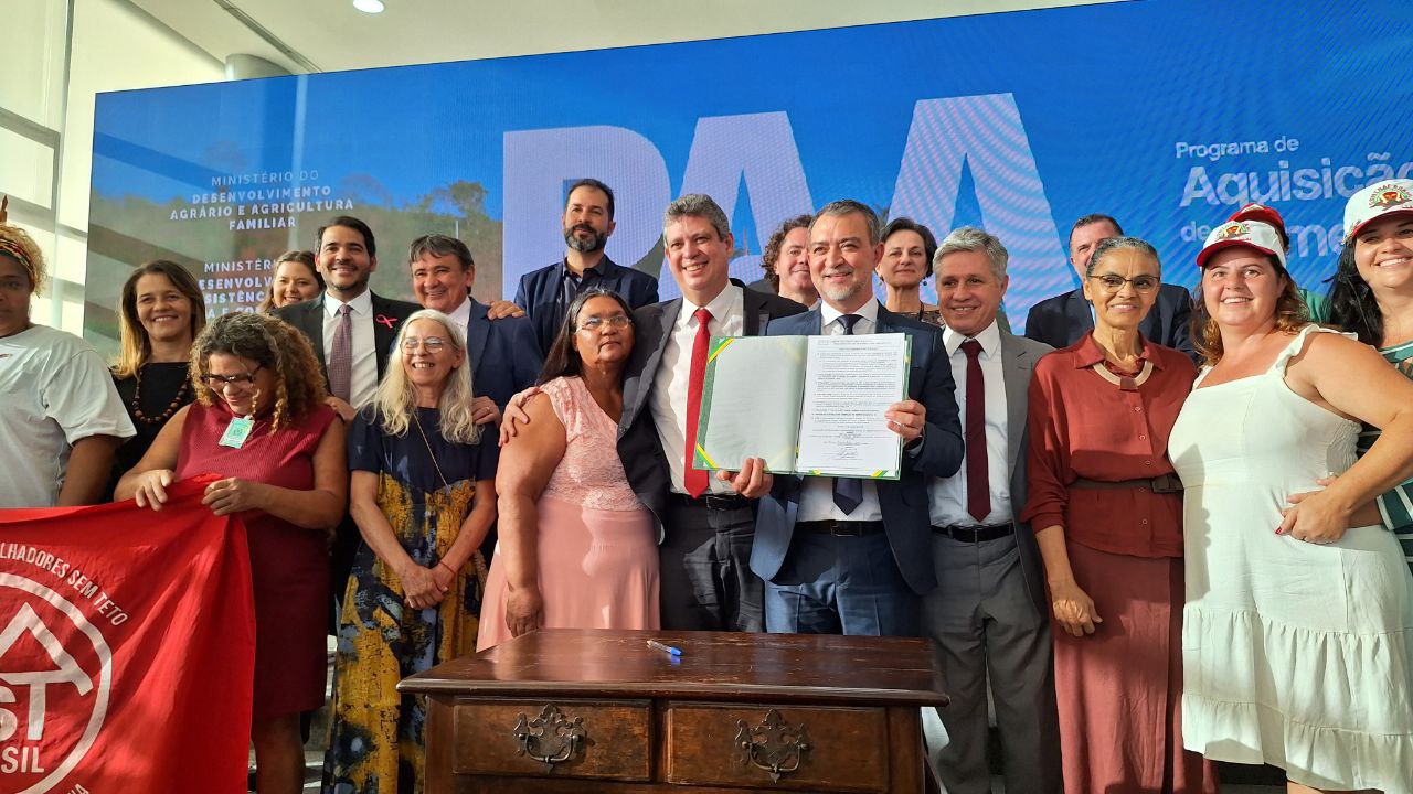 O anúncio ocorreu nesta segunda-feira (16), no Palácio do Planalto, durante a cerimônia de celebração ao Dia Mundial da Alimentação e aos 20 anos do PAA. Além do presidente da Conab, Edegar Pretto, participaram do evento a ministra do Meio Ambiente e Mudanças Climáticas, Marina Silva; os ministros do Desenvolvimento Agrário e Agricultura Familiar, Paulo Teixeira; da Secretaria-Geral da Presidência, Márcio Macêdo; do Desenvolvimento e Assistência Social, Wellington Dias; da Secretaria de Comunicação Social, Paulo Pimenta; e o Advogado-Geral da União, Jorge Messias.