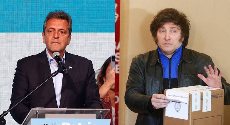 Sergio Massa, atual ministro da Economia, e Javier Milei, antissistema, farão 2º turno