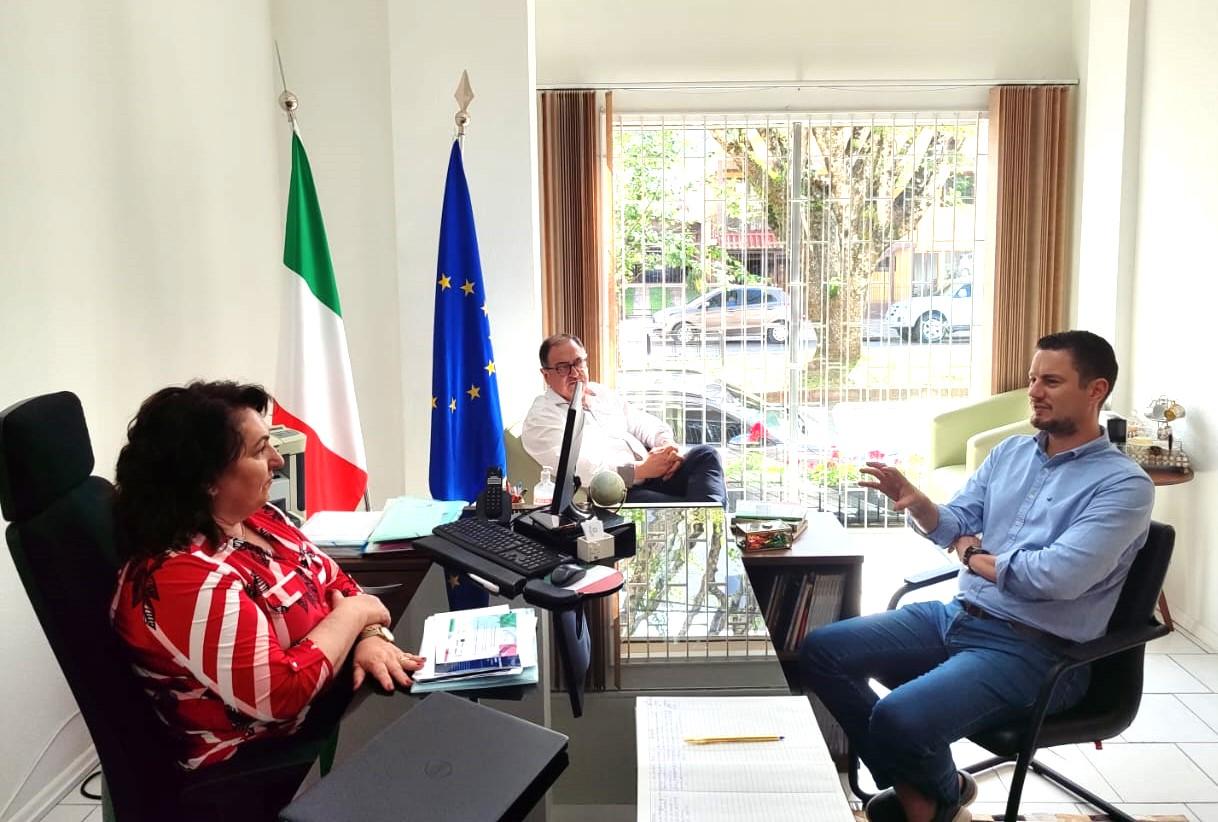 Conversaram sobre a interiorização de importantes serviços do Consulado-Geral da Itália em Porto Alegre, que acontece em Erechim nos dias 11 e 12 de novembro. Oportunidade para os cidadãos ítalo-gaúchos de Erechim aproveitar a facilidade da coleta biométrica no município, oferecida pela Representação Consular, necessária para atualização ou confecção do passaporte italiano. Essa é a primeira vez que o Consulado-Geral traz os serviços de biometria para Erechim e região.
