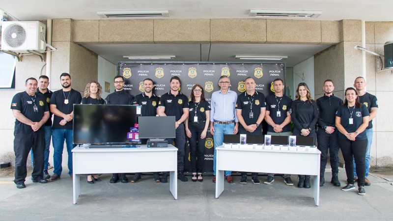 A Polícia Penal distribuiu, na sexta-feira (22/12), equipamentos para a instalação de 175 salas de videoconferências judiciais e visitas virtuais em 100 unidades prisionais das dez regiões penitenciárias do Estado. A entrega faz parte de um convênio com o Ministério da Justiça e Segurança Pública, cujo investimento total é de mais de R$ 3,5 milhões. As salas serão compostas por televisão com suporte, câmera de videoconferência, computador, mesa e cadeiras.