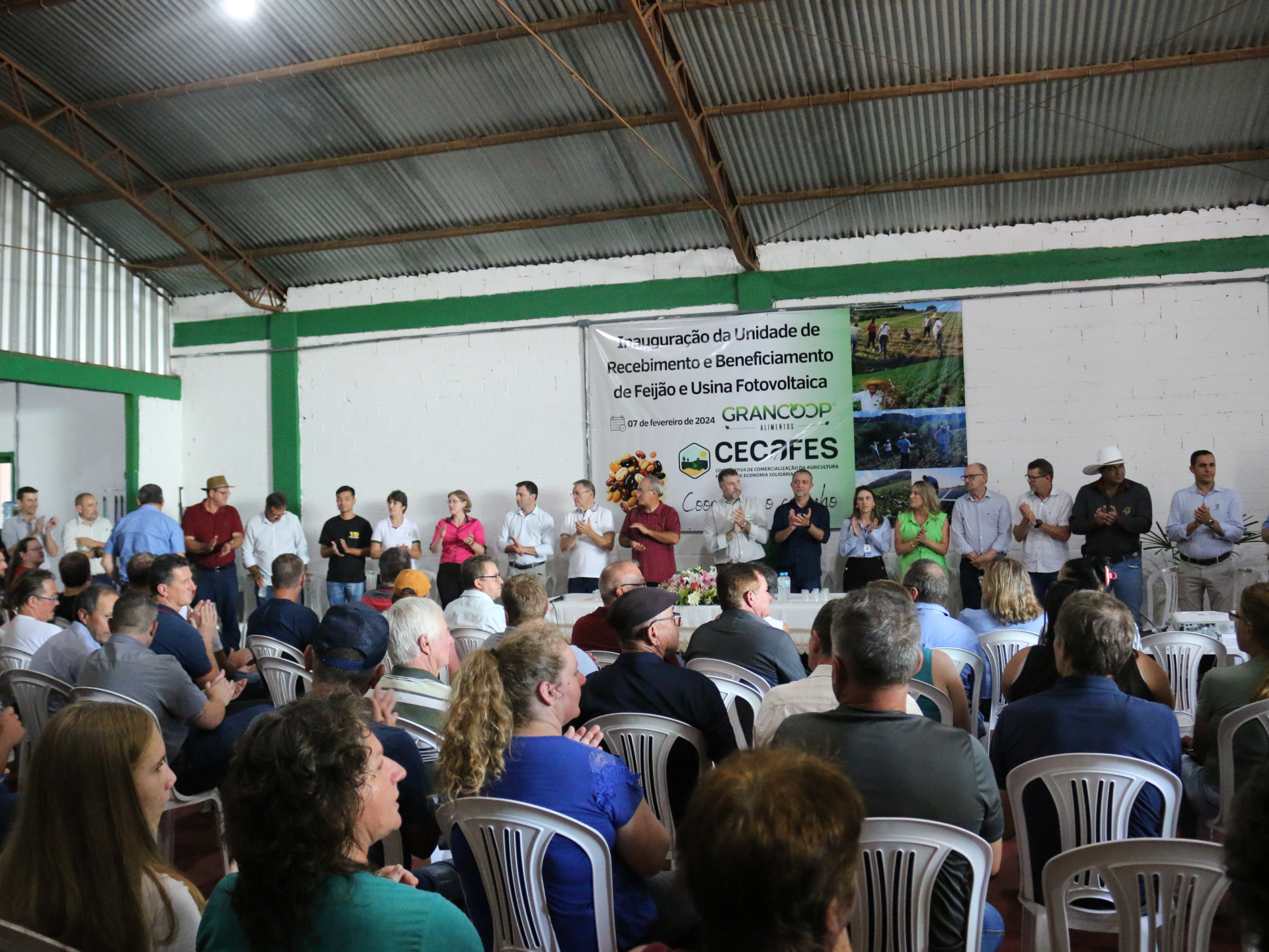 A Cooperativa de Comercialização da Agricultura Familiar de Economia Solidária (Cecafes) inaugurou, na quarta-feira (7), uma unidade de recebimento e beneficiamento de feijão e uma usina fotovoltaica. A estrutura está localizada na comunidade de Concórdia, em Marcelino Ramos. A cerimônia de inauguração contou a presença de autoridades, representantes de cooperativas e agricultores.