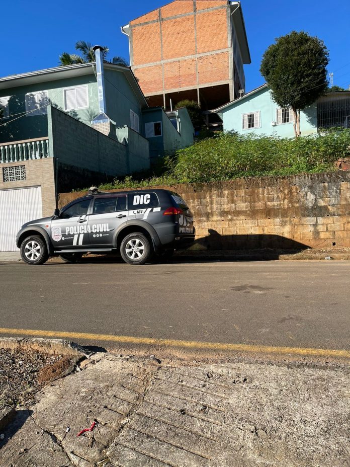 Simultaneamente, em Concórdia, foi cumprido um mandato de busca e apreensão na residência de outro investigado resultando na apreensão de uma peça de roupa possivelmente utilizada por ele no dia do crime.